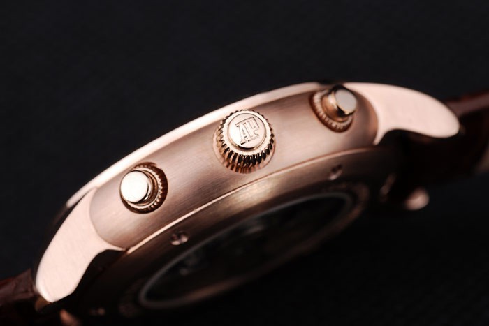 Krone: 18k Rose vergoldet cutwork Krone mit Audemars Piguet-logo und zwei kleinere Druckknopf Kronen auf beiden Seiten des it