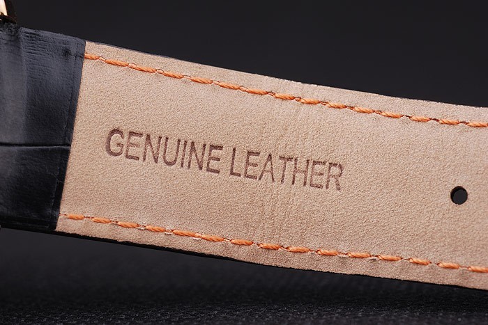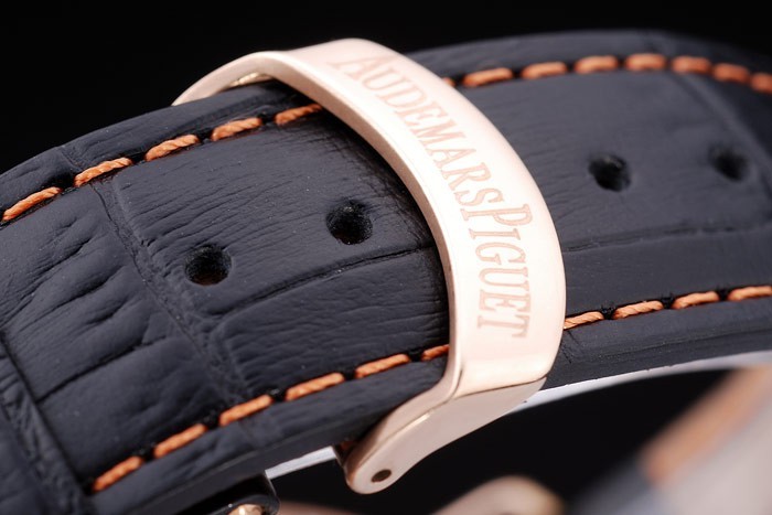 Armband plattierten: Schwarz Krokolederarmband mit orangefarbenen Nähten und Wärme geprägt Audemars Piguet Name und das logo und ein Audemars Piguet eingeschrieben 18k Rose vergoldet Flip-Chart Haken clasp