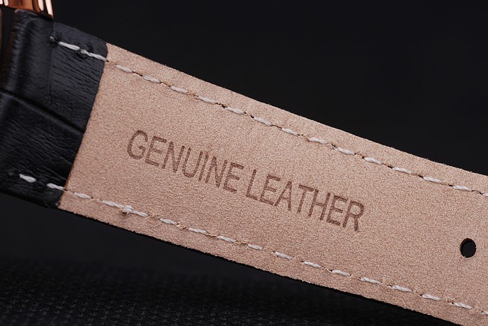 Armband plattiert: Schwarz Krokodillederband mit weißen Faden Nähte und Wärme geprägt Audemars Piguet Name und das logo und ein Audemars Piguet eingeschrieben 18k Rose vergoldet Haken clasp