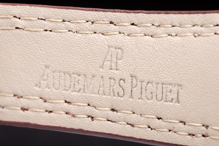 Armband: Hitze geprägt Audemars Piguet braun Krokolederband mit Doppel-weißen Nähten und Audemars Piguet graviert rostfreiem Stahlklapp in clasp