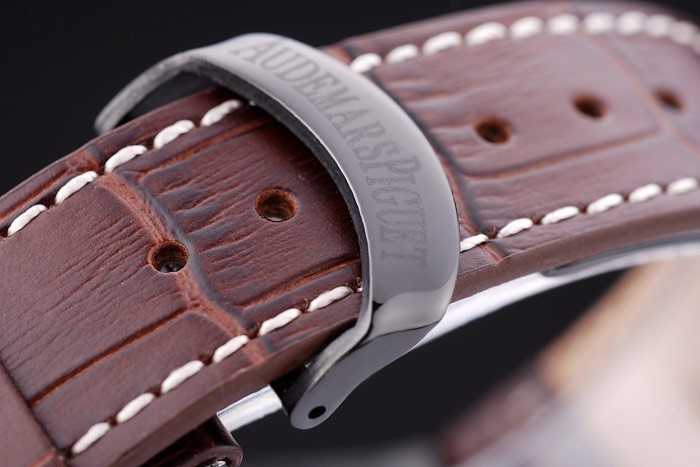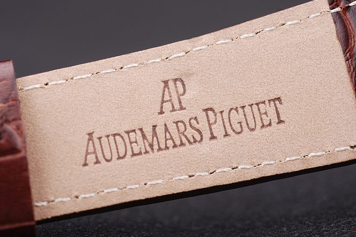 Armband: Dunkelbraun Krokodillederband mit weißen Fadenheftung und Wärme Audemars geprägt Piguet Name und das logo und ein Audemars Piguet eingeschrieben ionenplattiert Umklappen Haken clasp