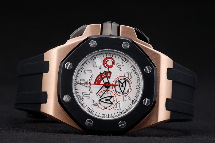 Armband plattiert: Schwarzes Kautschukband mit Hitze geprägt Audemars Piguet Royal Oak Offshore Stempel und ein Audemars Piguet eingeschrieben ionenplattiert Haken-Schnalle clasp