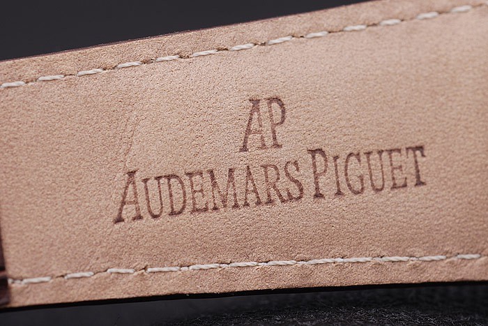 Armband: Braun Krokodillederband mit weißen Fadenheftung und Wärme geprägt Audemars Piguet Name und das Logo und ein Audemars Piguet eingeschrieben Edelstahl Flip-über Haken clasp