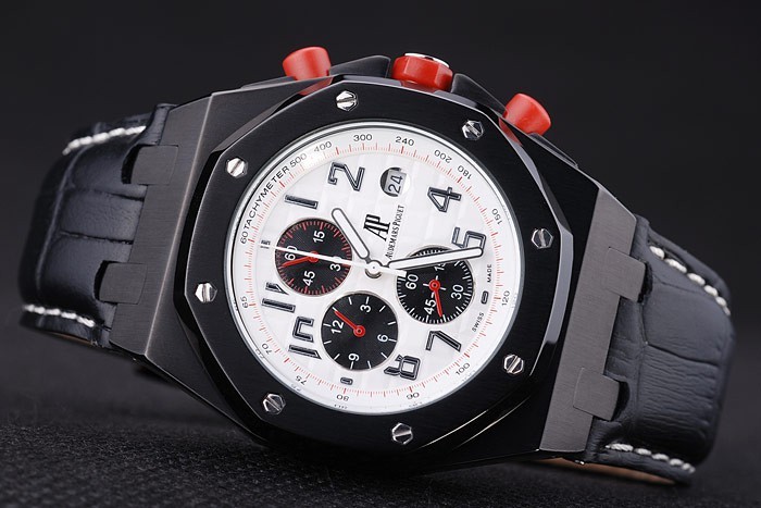 Armband: Schwarz Krokodillederband mit weißen Fadenheftung und Wärme geprägt Audemars Piguet Name und das logo und ein Audemars Piguet eingeschrieben ionenplattiert Umklappen Haken clasp