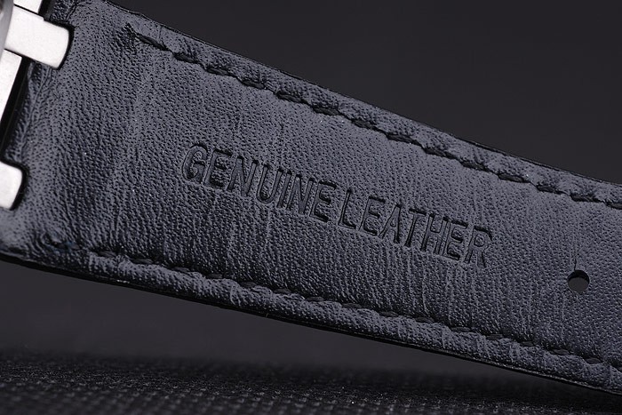 Armband: Schwarz Krokodillederband mit weißen Fadenheftung und Wärme geprägt Audemars Piguet Name und das logo und ein Audemars Piguet beschriftet Edelstahl Flip-über Haken clasp