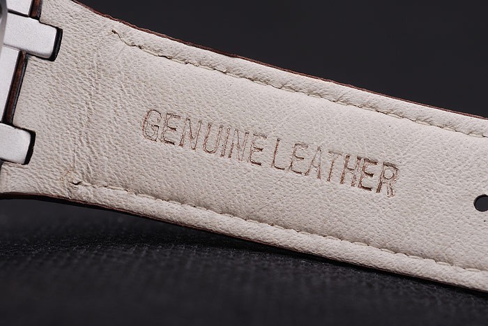 Armband: Braun Krokodillederband mit weißen Fadenheftung und Wärme geprägt Audemars Piguet Name und das logo und ein Audemars Piguet beschriftet Edelstahl Flip-über Haken clasp