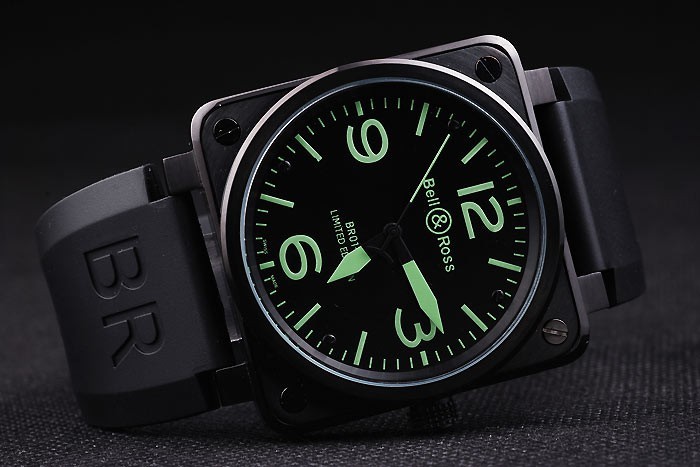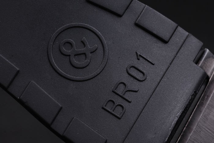 Armband: Schwarzes Kautschukband mit Wärme geprägtes Logo, Modellnummer und Produkt Code und BR graviert ionenplattiert Haken-Schließe
