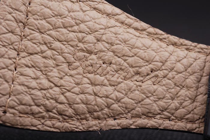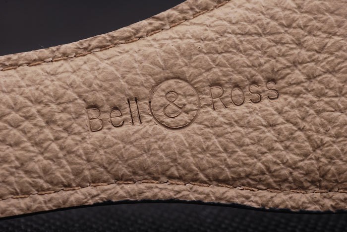 Armband: Schwarzes Lederband mit Hitze Prägestempel und Bell&Ross BR graviert ionenplattiert Haken-Schließe