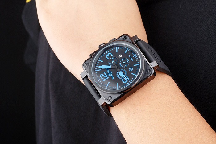 Krone: ionenplattiert cutwork Krone mit Bell&Ross logo und eine quadratische Krone auf beiden Seiten des Haupt Krone