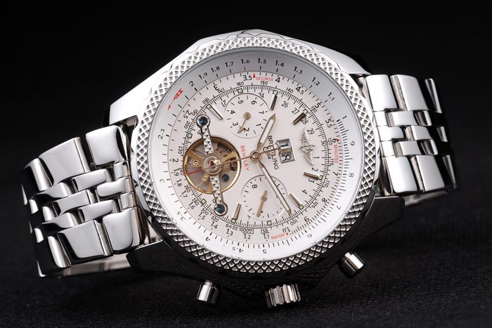 Armband: Fein verknüpft poliert Edelstahlarmband mit Datumscode und Breitling gravierten Entriegelungstaster falten clasp