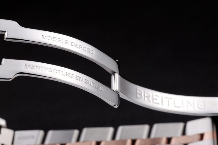 Armband: Edelstahl poliert und Rosengold Gliederarmband mit Datum und Breitling gravierten Falte in clasp