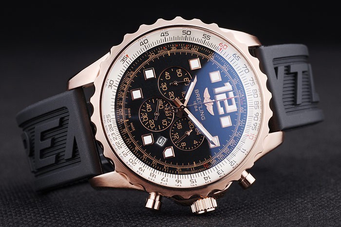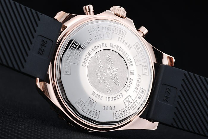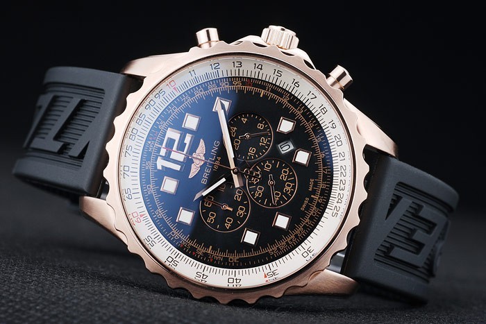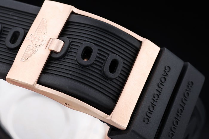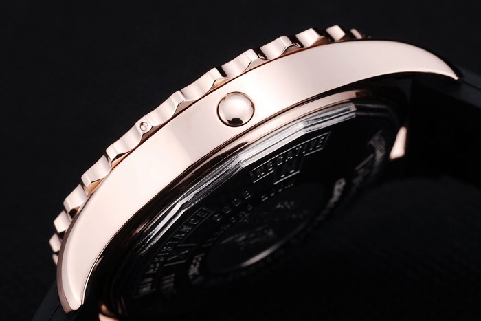 Armband plattiert: Schwarzes Kautschukband mit Breitling logo graviert Rose-Gold-Haken-Schnalle clasp