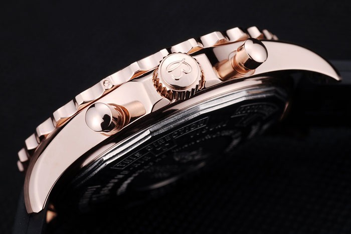 Krone: 18k Roségold cutwork Krone überzogen mit Breitling-logo und zwei kleinere Edelstahl Druckknopf Kronen auf beiden Seiten des it