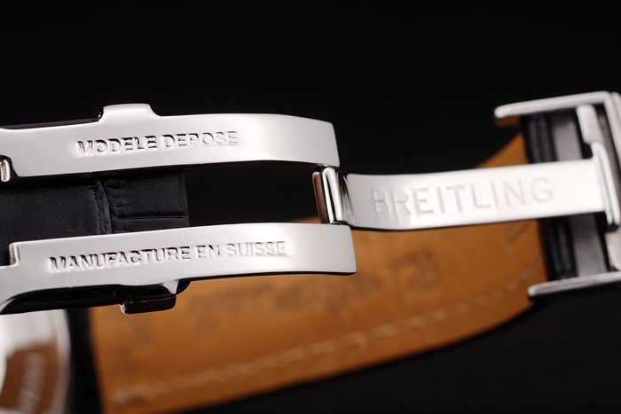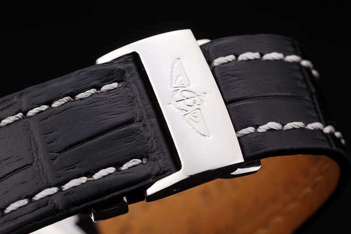 Armband: Hitze Breitling schwarz Krokodilleder geprägt Band mit weißen Fadenheftung und eine Breitling-logo Edelstahl Einfalt-clasp