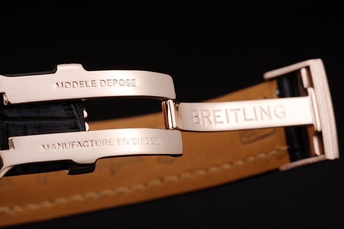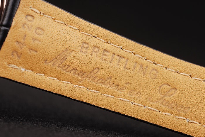 Armband: Wärme Breitling schwarzem Krokolederarmband mit weißen Fadenheftung und einem Breitling Logo graviert fach- geprägt in Rosen vergoldet clasp