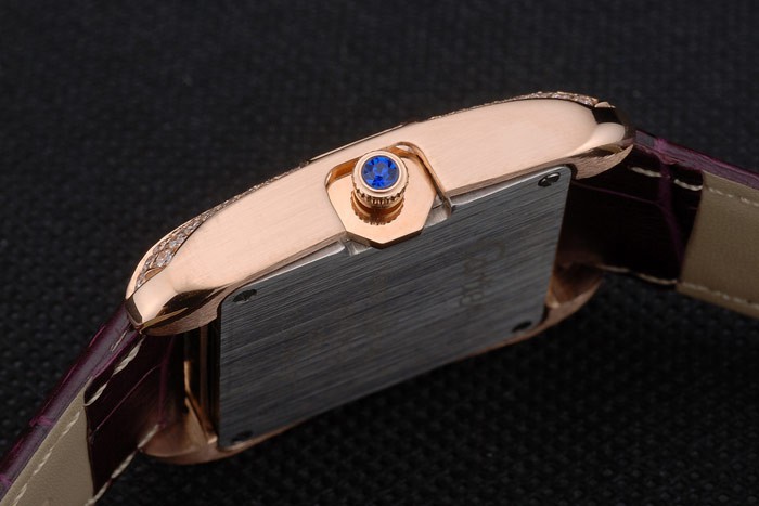 Armband plattiert: Cartier Hitze geprägt lila Krokolederarmband mit 18 Karat Roségold plattiert Einfalt-Verschluss-Schnalle