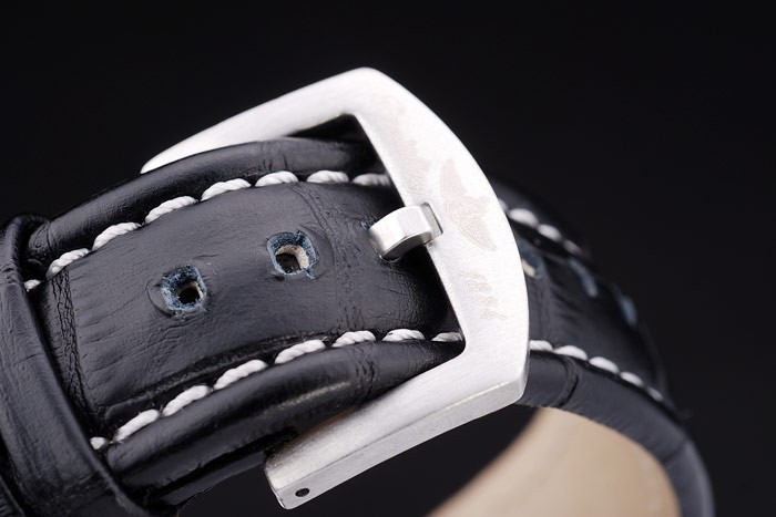 Armband: Breitling 1884 und Logo Wärme geprägt schwarzes Lederband mit weißen Nähten und Edelstahlhaken-Schnalle clasp