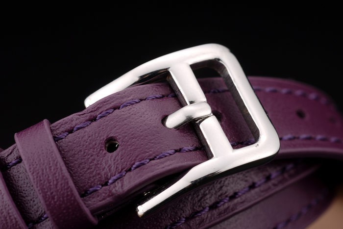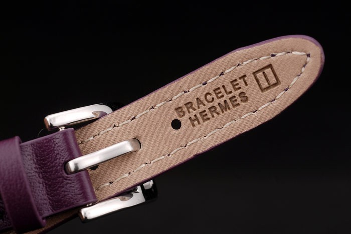 Armband: Längliche lila Lederband mit Wärme Einprägung Armband Hermes und Hermes poliert Haken-Schließe
