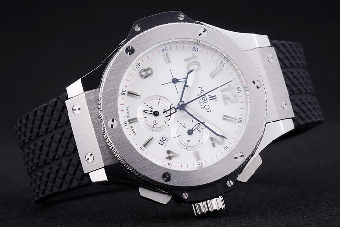 Armband: Wärme geprägtes Logo und Hublot Geneve texturierten schwarzen Kautschukarmband mit Hublot Geneve gravierte Edelstahl Überfaltposition Push -release Haken clasp