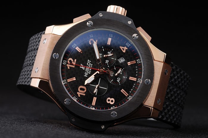 Armband: Strukturiertes schwarzes Gummiband mit Rosen Gold Druckknopfhakenverschluss und Hublot engravings