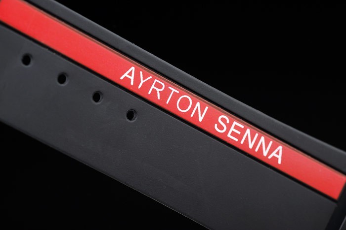 Fall: Strukturiertes schwarzes Gummiband mit ionenplattiert Druckknopfhakenverschluss, Wärme geprägt Gravur RED MOON: Ion Edelstahlgehäuse