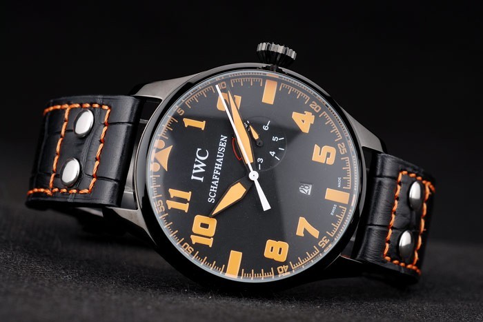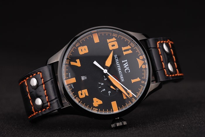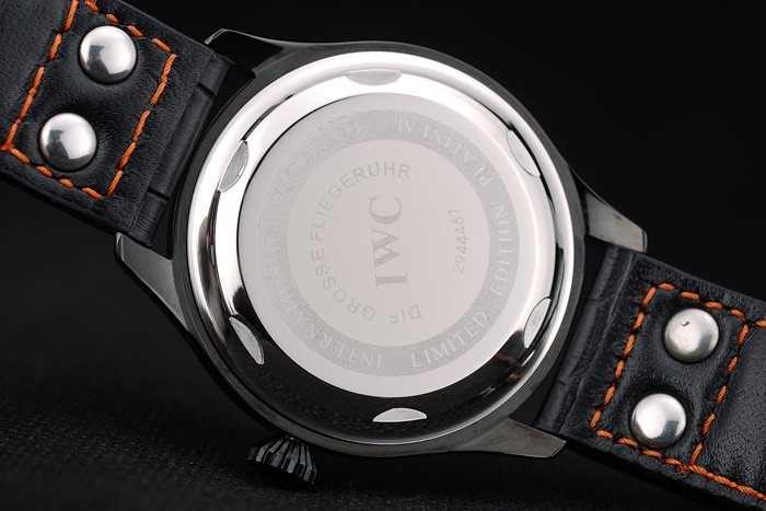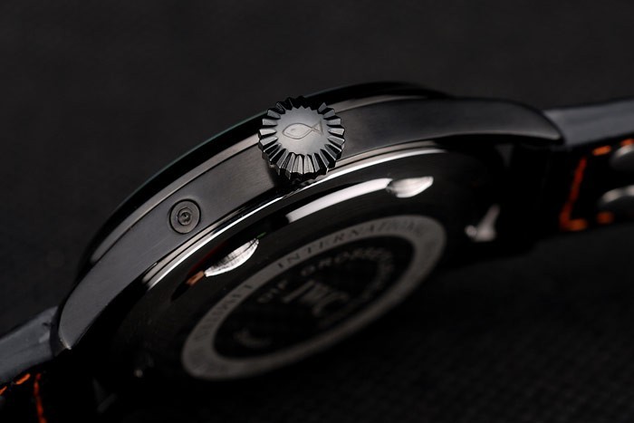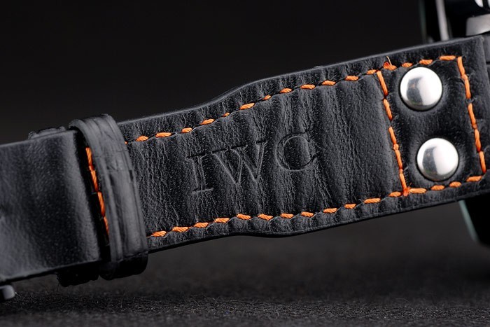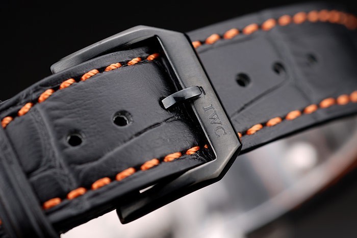 Armband: IWC Hitze geprägt schwarzem Krokolederarmband mit orangefarbenen Nähfaden und IWC gravierten ionenplattiert Edelstahlhaken-Schnalle clasp