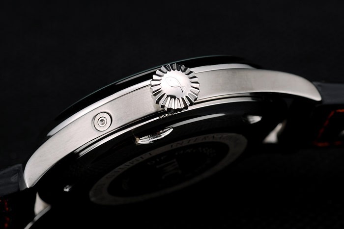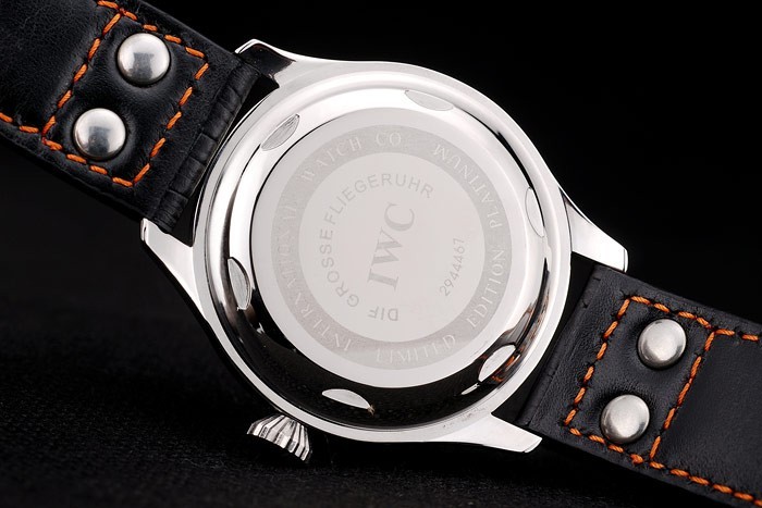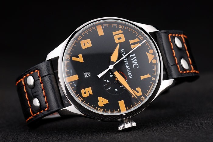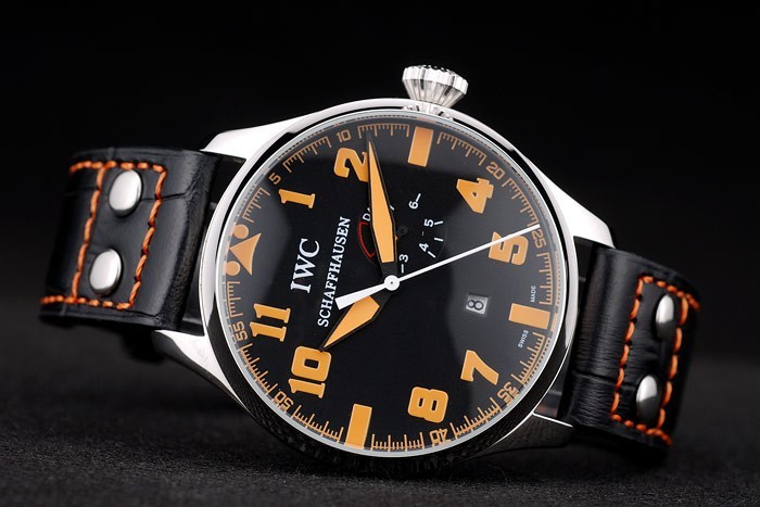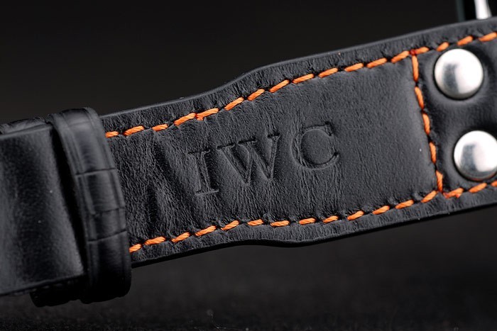 Armband: IWC Hitze geprägt schwarzem Krokolederarmband mit orangefarbenen Nähfaden und graviert gebürstetem Edelstahl Haken-IWC clasp