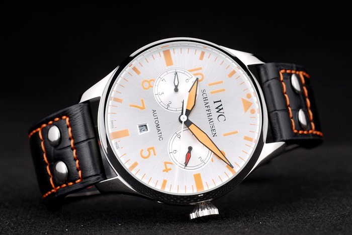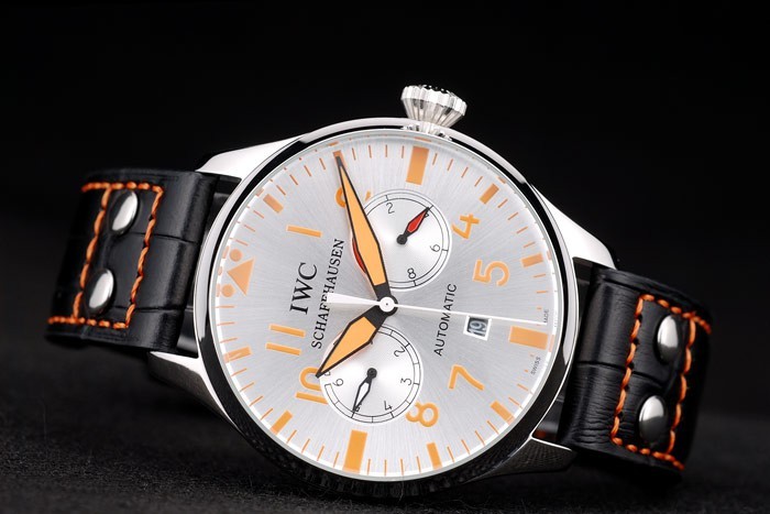 Armband: IWC Hitze geprägt schwarzem Krokolederarmband mit orangefarbenen Nähfaden und graviert gebürstetem Edelstahl Haken-IWC clasp