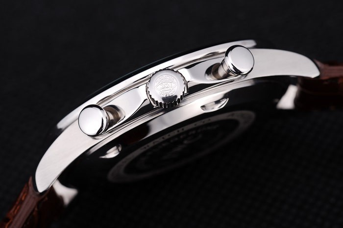 Krone: Edelstahl poliert cutwork Krone mit IWC Logogravur und zwei kleinere runde Druckknopf Kronen auf beiden Seiten des it