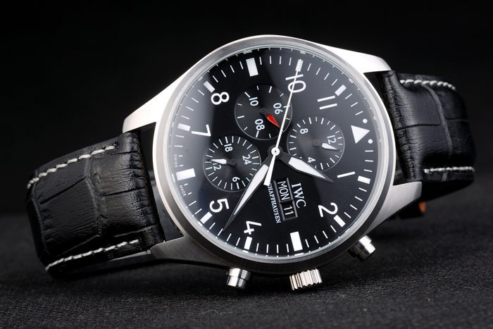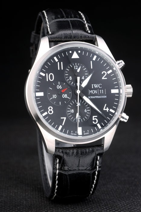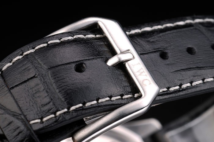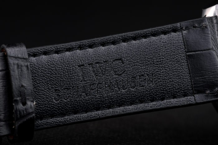 Armband: IWC Schaffhausen Wärme geprägt schwarzem Krokolederarmband mit weißen Fadenheftung und IWC eingeschrieben rostfreiem Stahlhaken-Schnalle clasp