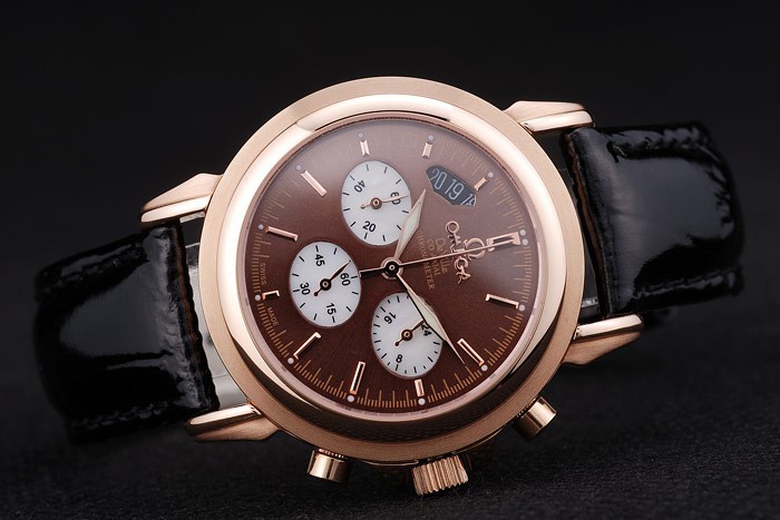 Armband: Patent braune Schlange Lederband mit Hitze geprägt Omega Stempel und dick hervorgehoben Haken-Omega-Logo Rose-Gold clasp