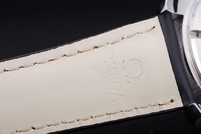 Armband: Hitze Omega Name und das Logo orangefarbenen Nähten schwarzes Lederarmband mit Omega-Logo eingraviert poliertem Edelstahl geprägt fach-Flip clasp