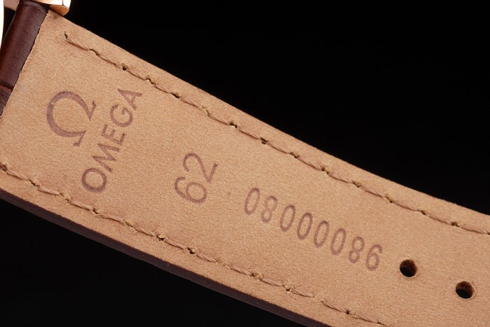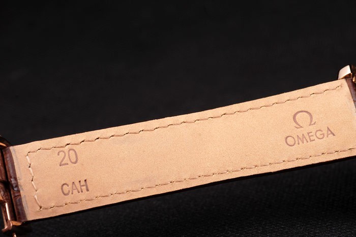 Armband: Brown Krokolederarmband mit Hitze geprägt Omega Stempel und Omega bezeichnet 18k Rose-Gold klappbare in clasp