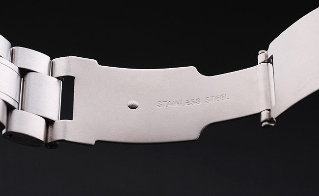 Armband: geschliffener und polierter Edelstahl-Gliederarmband mit Omega Gravuren Druckknopfentriegelung Einsatz clasp