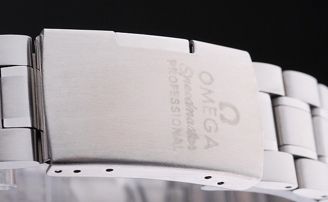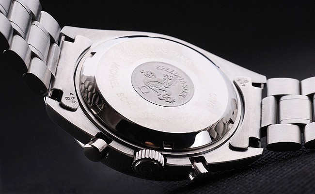 Rückseite: Edelstahl-Steckgehäuseboden mit Omega Inschriften