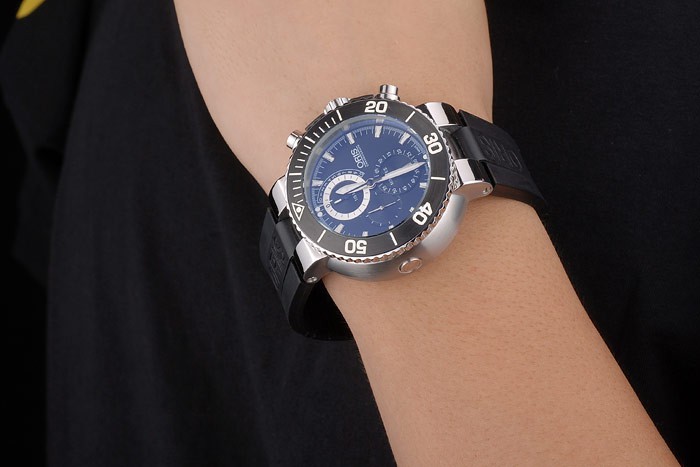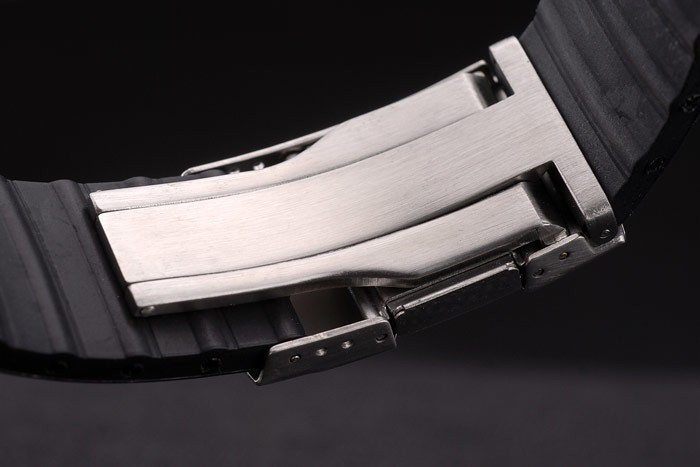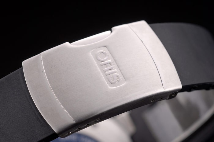 Armband: Oris Hitze geprägten schwarzen Kautschukarmband mit Oris gravierte rostfreiem Stahl gebürstet Einsatz clasp