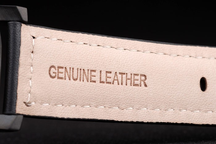 Armband: Schwarzes Lederband mit Wärme geprägt Luminor Panerai Stempel und Ionen- vernickelt Edelstahl Haken-Schließe mit Panerai engraving