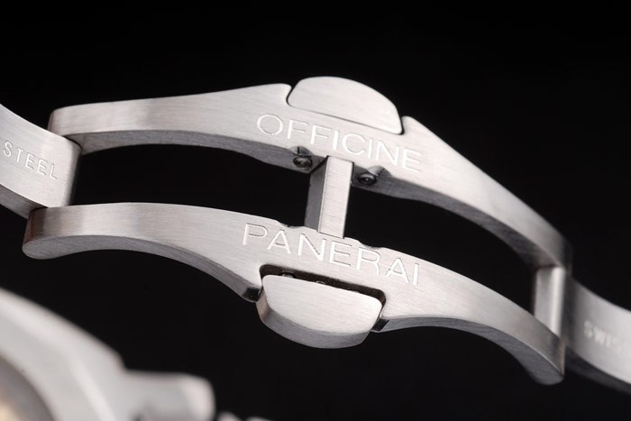 Diese Uhr hat AR-Glas. Die Gesichtsfarbe unterschiedliche Farben erscheinen Je nachdem, wie das Licht fällt auf itBack: Edelstahl umrandeten transparent Snap-In zurück mit Panerai Gravur