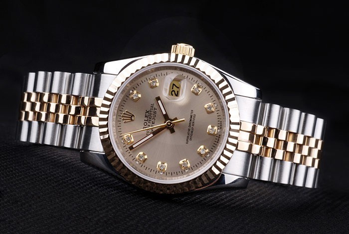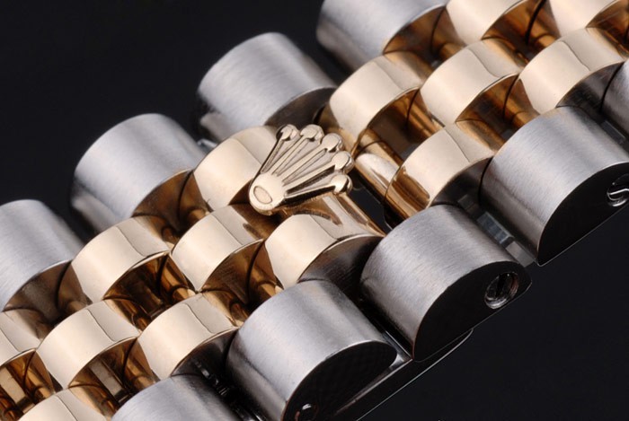 Armband: Zwei getönten Gliederarmband aus poliertem Edelstahl und 18 Karat Gelbgold überzogenem Stahl mit Rolex Gravur versteckte Spange Anzeigen der Rolex logo