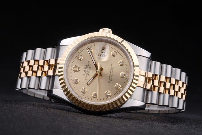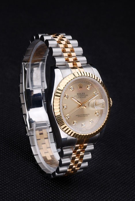 Armband: Zwei getönten Gliederarmband aus poliertem Edelstahl und 18 Karat Gelbgold überzogenem Stahl mit Rolex Gravur versteckte Spange Anzeigen der Rolex logo