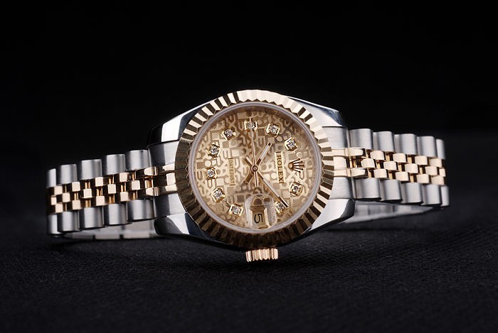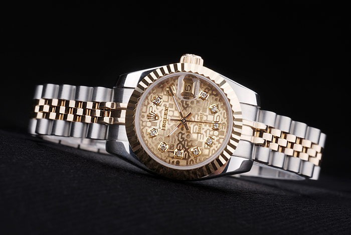 Armband: Zwei getönten Gliederarmband aus gebürstetem Edelstahl und 18 Karat Gelbgold überzogenem Stahl mit Rolex Gravur versteckte Spange Anzeigen der Rolex logo