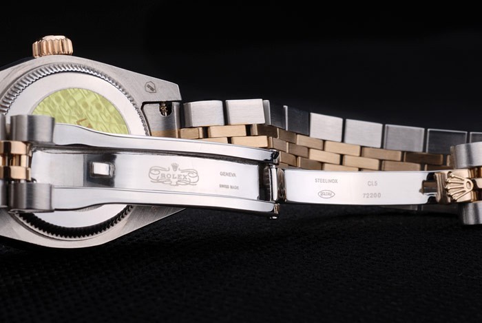 Rückseite: Edelstahl Push-Gehäuseboden mit grünen Rolex-Logo stamp