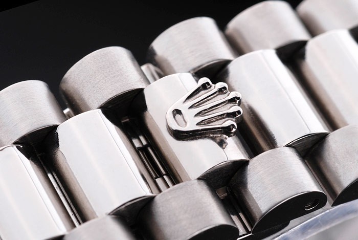 Armband: geschliffener und polierter Edelstahl Armband mit Rolex Gravur versteckte Spange die Rolex logo