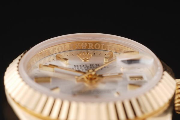 1Back: in 18 Karat Gelbgold mit grünen Rolex Aufkleber nach hinten schieben und markings