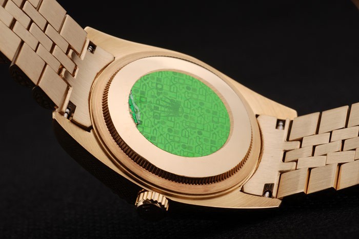 Back: in 18 Karat Gelbgold mit grünen Rolex Aufkleber und markings