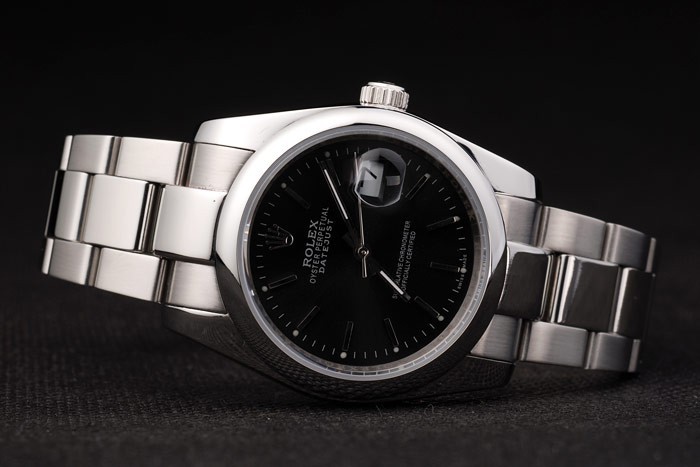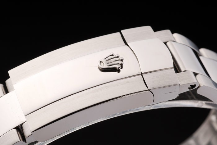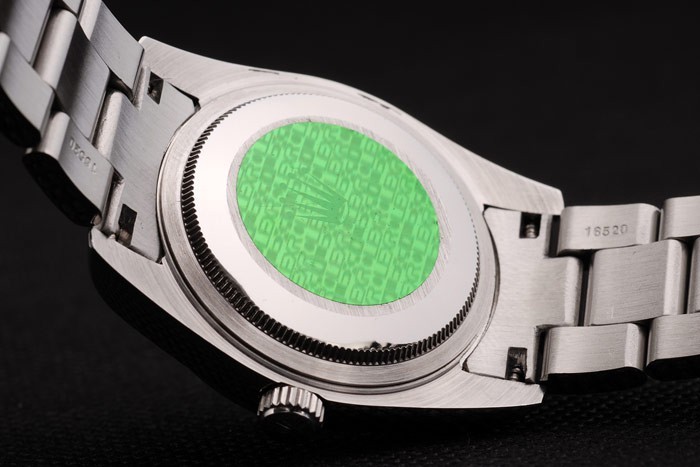 Back Bewegung: Push-in Edelstahl zurück mit grünen Rolex Aufkleber und markings