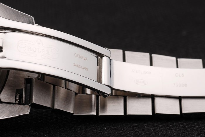 Back: Push-in Edelstahl zurück mit grünen Rolex Aufkleber und markings