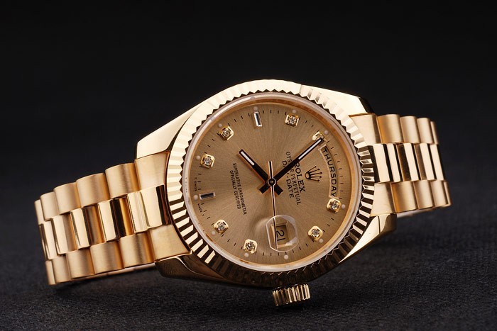 Zurück: Gelbgold Push auf der Rückseite mit Rolex markings