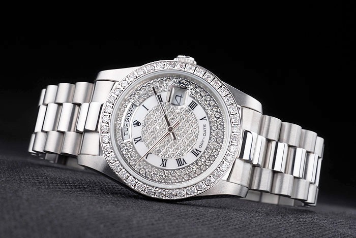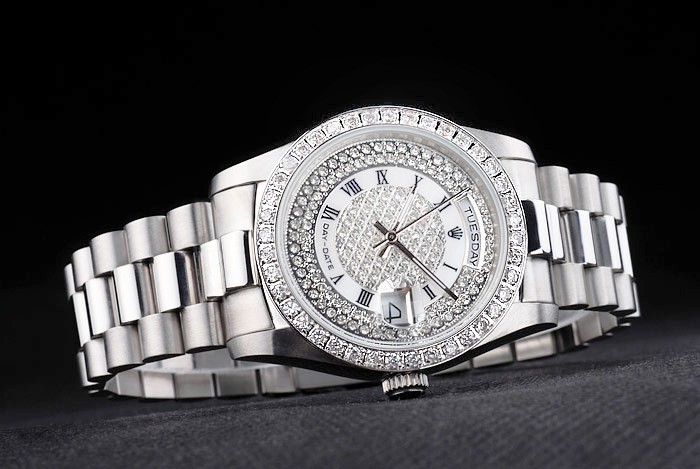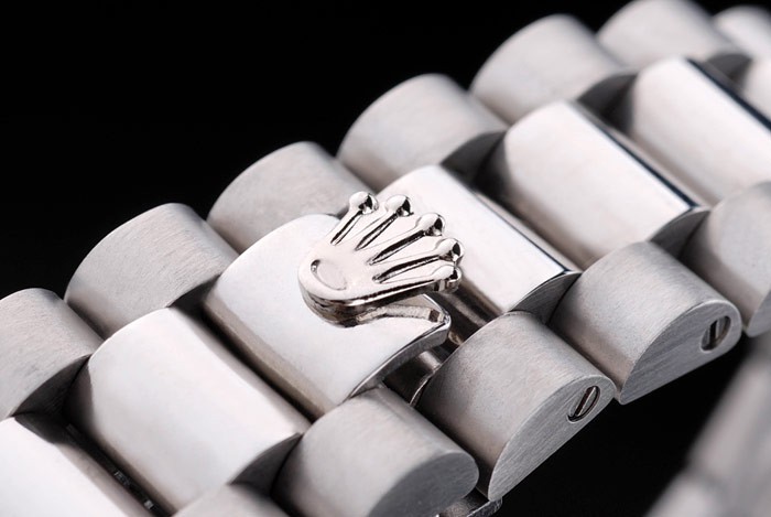 Armband: geschliffener und polierter Edelstahl-Gliederarmband mit Rolex Gravur versteckte Spange die Rolex logo