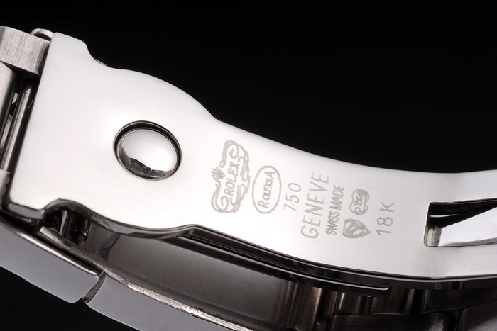 Armband: geschliffener und polierter Edelstahl-Gliederarmband mit gravierte Rolex Faltschließe die Rolex logo